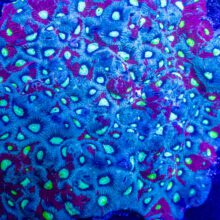 Encrusting Corals aren’t terribly difficult to keep, but beginners often find them to be very slow growing. They have a substantial skeletal structure so they require an ample and balanced availability of dKH and Calcium to grow. Most tend to fluoresce brighter colors in higher light. They can be pretty versatile when it comes to flow, but very few corals can be used to fill a “hot spot” from a strong power head and thrive as well as Favia or Favites!
