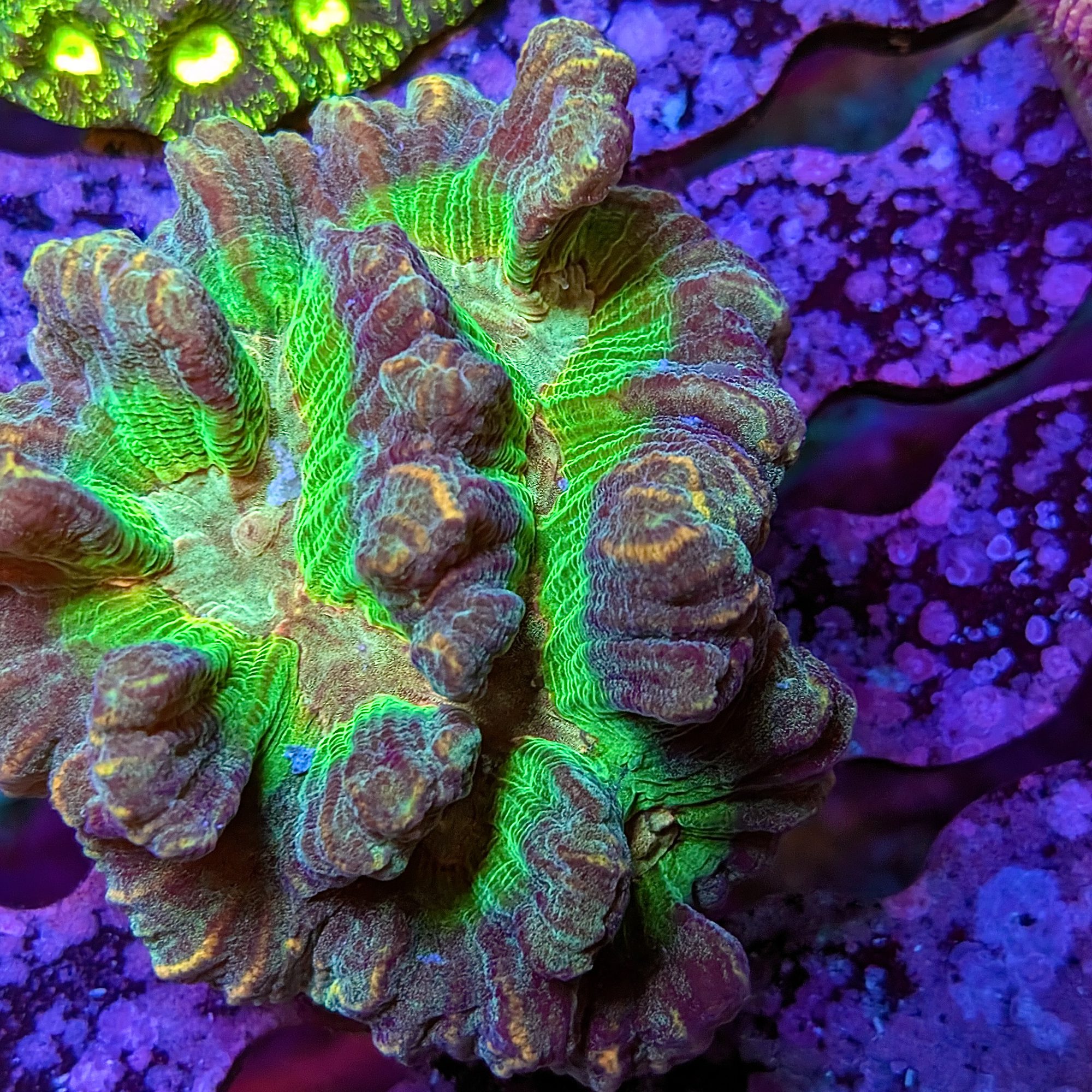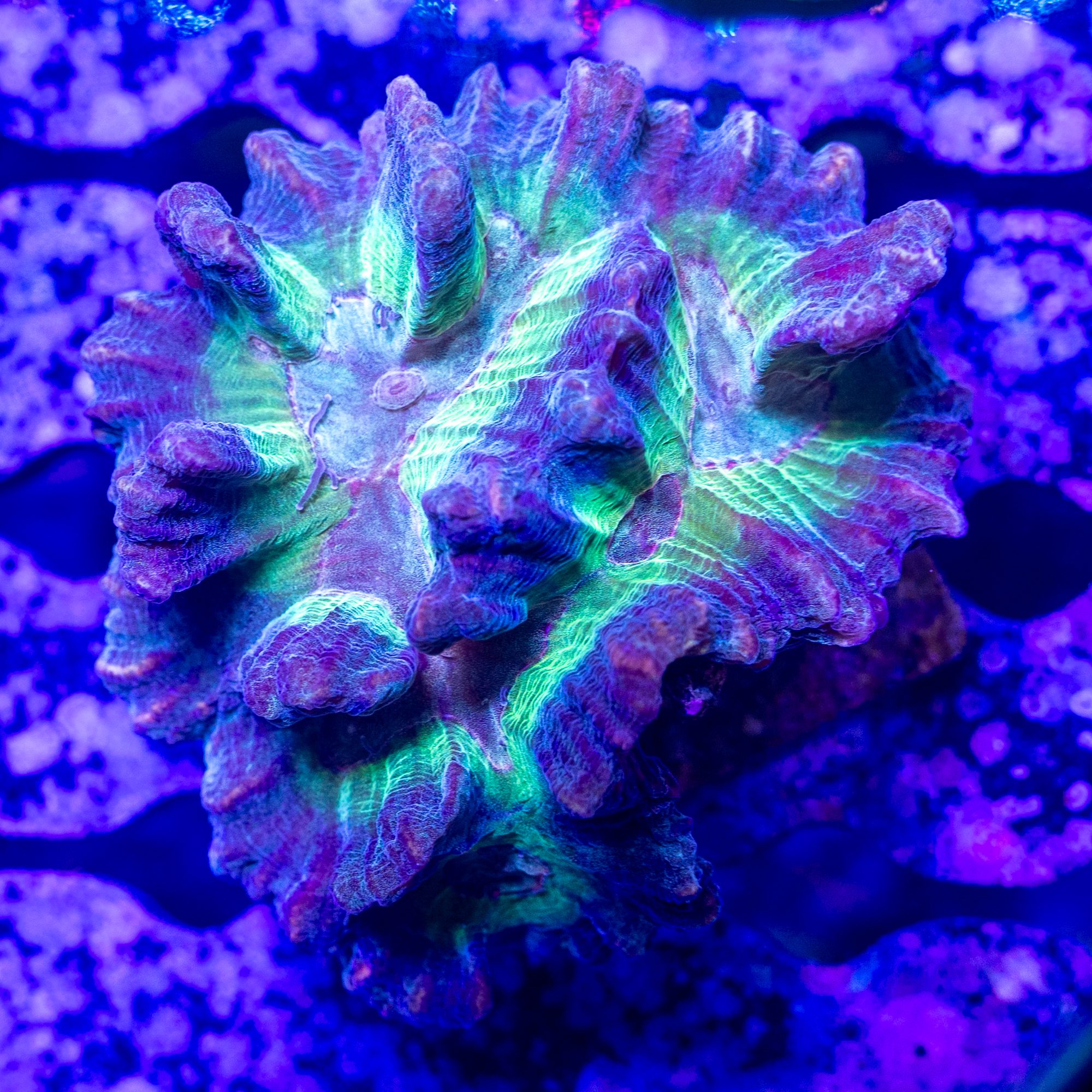 Pectinia offers a really cool growth pattern, with its unique skeletal structure, but should be placed carefully as their sweeper tentacles can be quite long and pack a real punch to nearby corals! They’re pretty adaptable from lower to higher flow environments, but we find the higher the flow, the longer those sweepers will get!