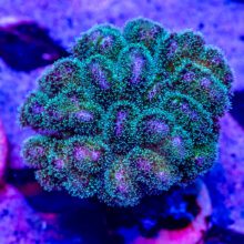 Encrusting Corals aren’t terribly difficult to keep, but beginners often find them to be very slow growing. They have a substantial skeletal structure so they require an ample and balanced availability of dKH and Calcium to grow. Most tend to fluoresce brighter colors in higher light. They can be pretty versatile when it comes to flow, but very few corals can be used to fill a “hot spot” from a strong power head and thrive as well as Favia or Favites!