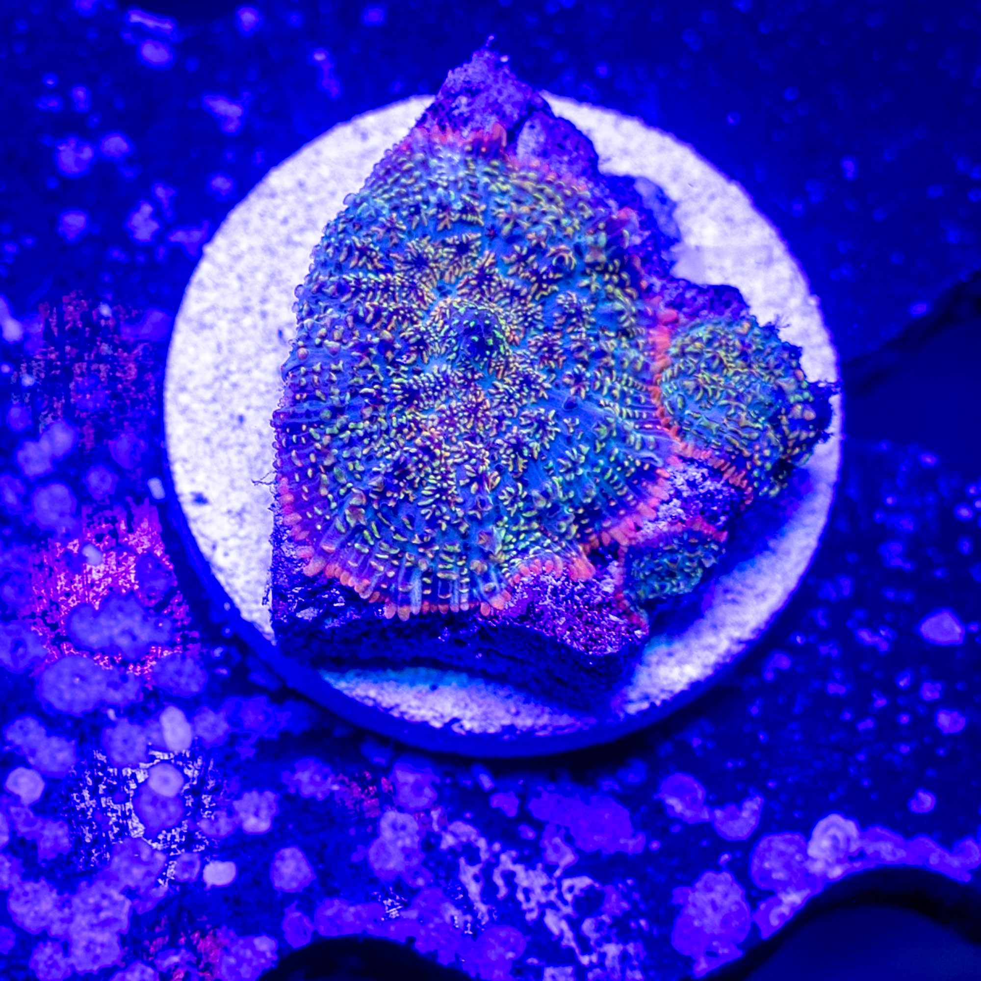 Rhodactis Mushrooms are beautiful intricately patterned mushroom corals that are a great option for beginners, but loved by seasoned hobbyists just the same. They thrive in low to moderate, indirect flow & are adaptable to a wide range of PARs with acclimation.