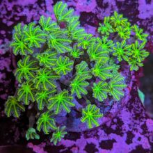 Clove Polyps or Clavularia sp. are a fairly easy to keep Soft coral. The trickiest part is placement, as you want enough indirect flow to keep the coral healthy, and prevent bacterial, fungal or algae from growing in between the polyps, but to high of flow and they’ll end up looking more like a Xenia blowing in the wind, in which case they often shrink up, and slowly loose polyps along the edges taking the brunt of the flow. We also find that they can do well from quite low, to Moderately high light with some time to adapt, but often maintain large Polyp Size when kept at a bit lower PAR.
