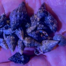 These Crabs are actually filter feeders. Their claws aren’t for grabbing food – their mouths have little filter feeding arms – pretty cool to watch! They are reef safe and very peaceful, but don’t count on them as part of your clean up crew. They will often host anemones when given the opportunity as well! Their shell has a shiny blue to it, but we photographed them in daylight, so the blue is quite washed out.