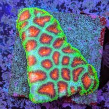 Encrusting Corals aren’t terribly difficult to keep, but beginners often find them to be very slow growing. They have a substantial skeletal structure so they require an ample and balanced availability of dKH and Calcium to grow. Most tend to fluoresce brighter colors in higher light. They can be pretty versatile when it comes to flow, but very few corals can be used to fill a “hot spot” from a strong power head and thrive as well as Favia or Favites!