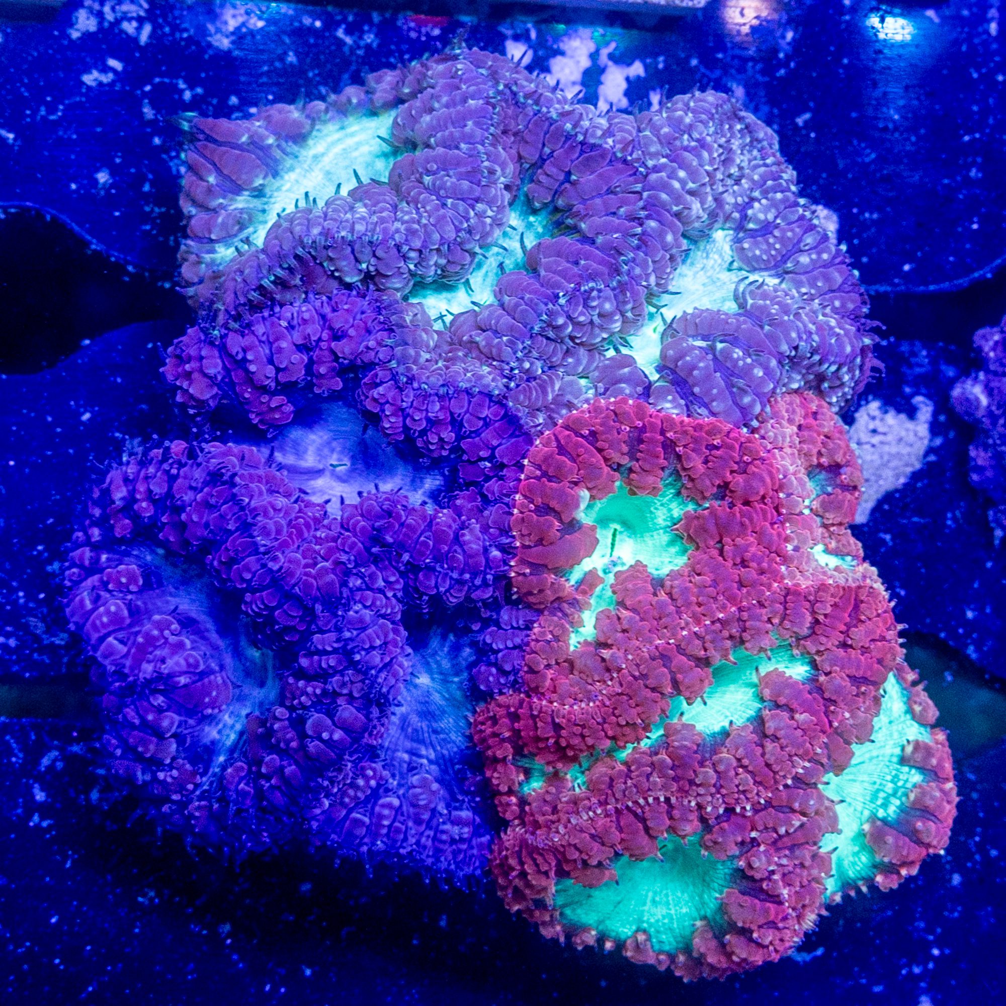 There are two major sub species of Blastomussa, Merletti & Wellsi, but it is also important to note that Australian and Indonesia Wellsi are unique. We find Blastomussa Merletti & Australian Wellsi to be hearty, compatible, fairly easy to keep corals. Indo Blastomussa Wellsi are one of the trickier LPS corals and are better suited for more mature, stable systems.