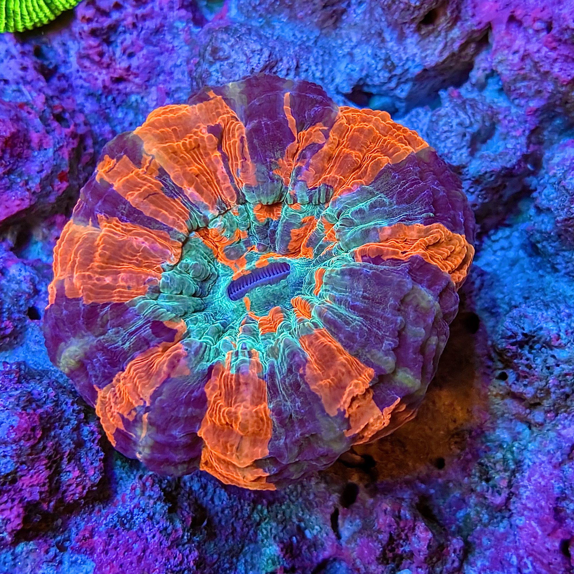 WYSIWYG Acanthophyllia, or Meat Coral, absolutely stunning coloration, in a very neat pattern, and this is hinting at some really tremendous color development!