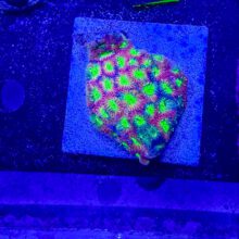 Encrusting Corals aren’t terribly difficult to keep, but beginners often find them to be very slow growing. They have a substantial skeletal structure so they require an ample and balanced availability of dKH and Calcium to grow. Most tend to fluoresce brighter colors in higher light. They can be pretty versatile when it comes to flow, but very few corals can be used to fill a “hot spot” from a strong power head and thrive as well as Favia or Favites!
