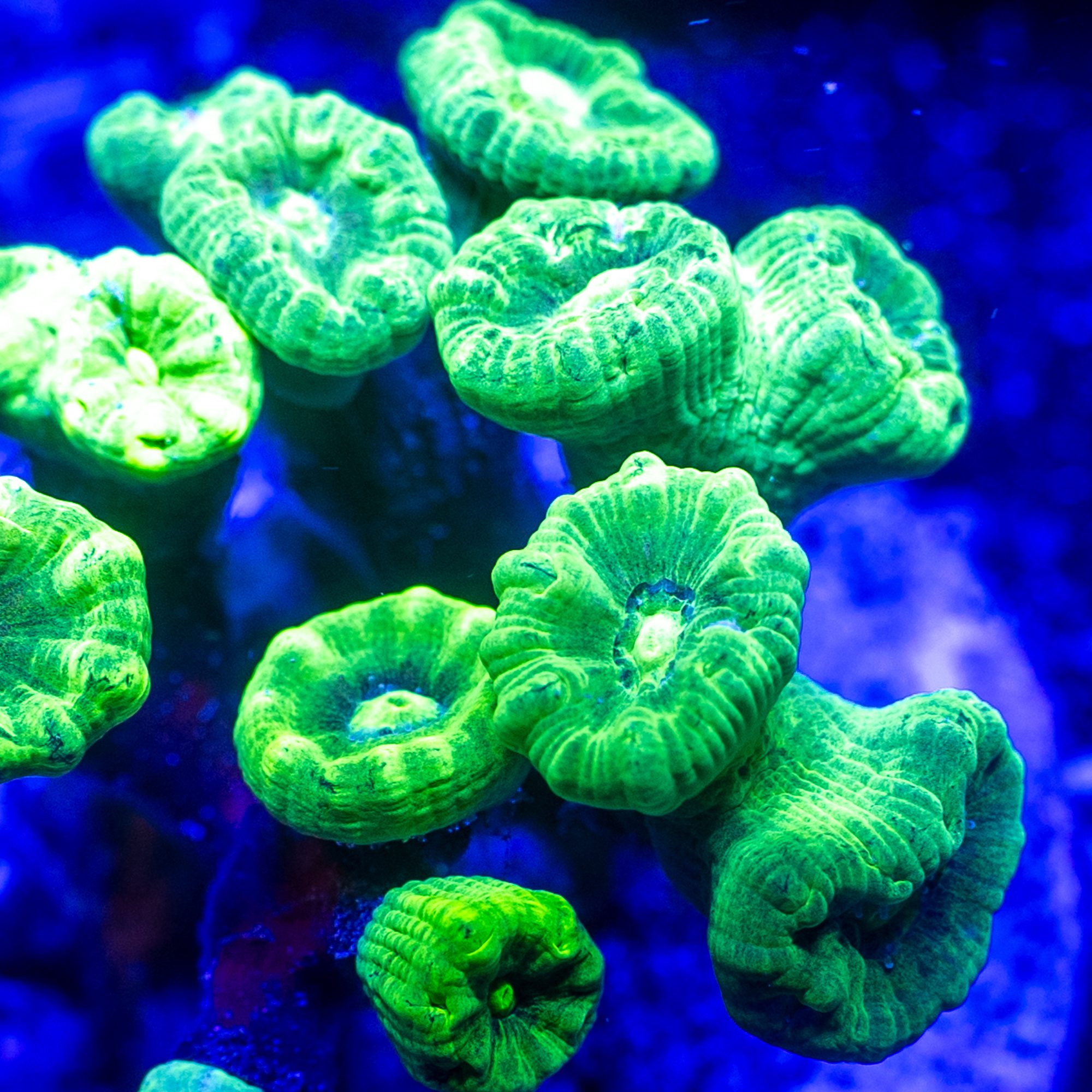 Candy Canes are a great starter coral, and have a unique growth pattern offering good dimension as opposed to encrusting corals as it grows up and out from the rock creating intrigue.