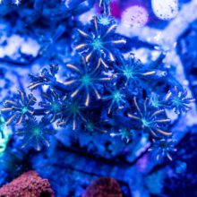 Clove Polyps or Clavularia sp. are a fairly easy to keep Soft coral. The trickiest part is placement, as you want enough indirect flow to keep the coral healthy, and prevent bacterial, fungal or algae from growing in between the polyps, but to high of flow and they’ll end up looking more like a Xenia blowing in the wind, in which case they often shrink up, and slowly loose polyps along the edges taking the brunt of the flow. We also find that they can do well from quite low, to Moderately high light with some time to adapt, but often maintain large Polyp Size when kept at a bit lower PAR.