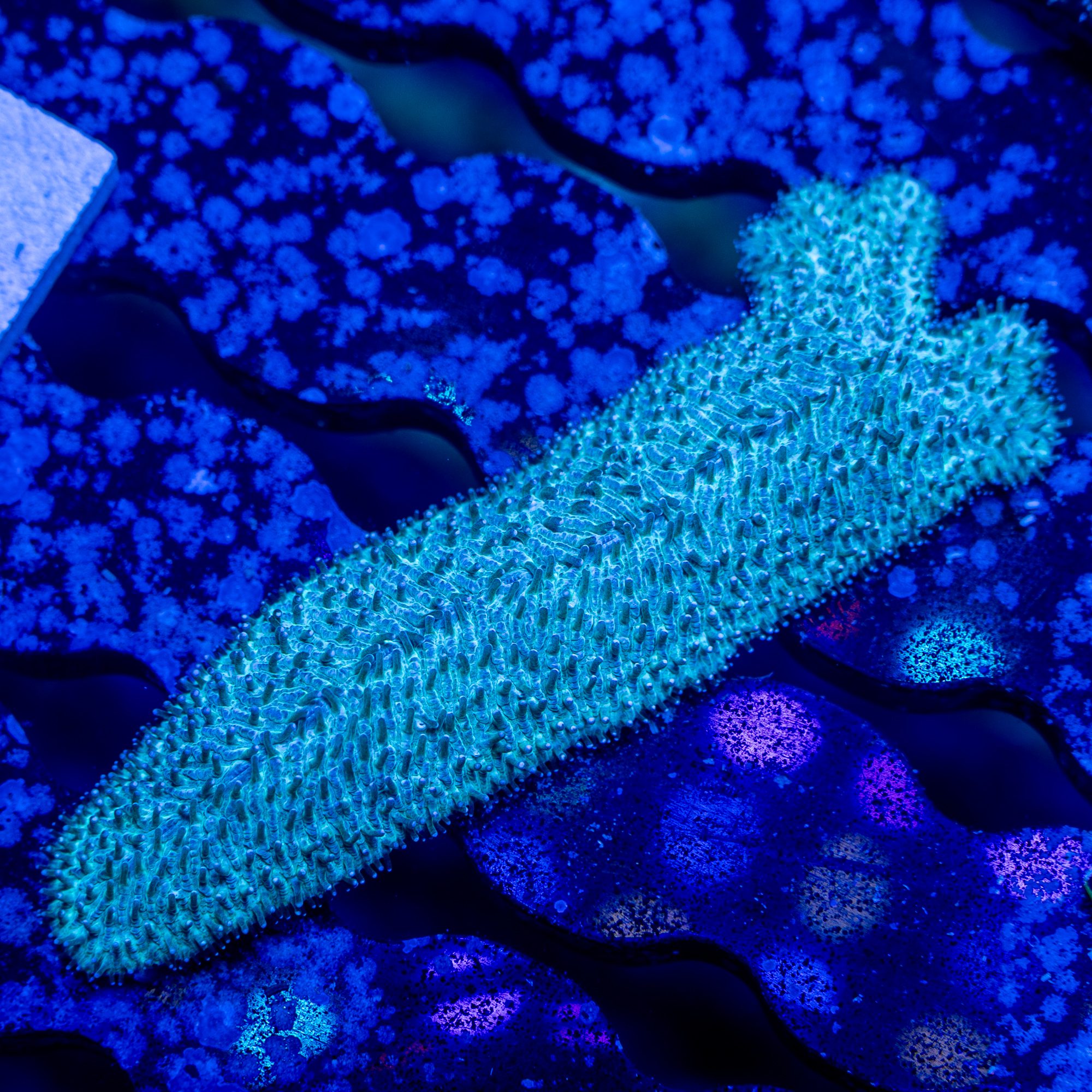 We dip and put all corals through a quarantine process as we import them, some longer than others depending on what we see with each shipment. Once a week our team spends hours with dental tools combing our racks and corals, searching out any pests that we can find that may have made it into our tanks.