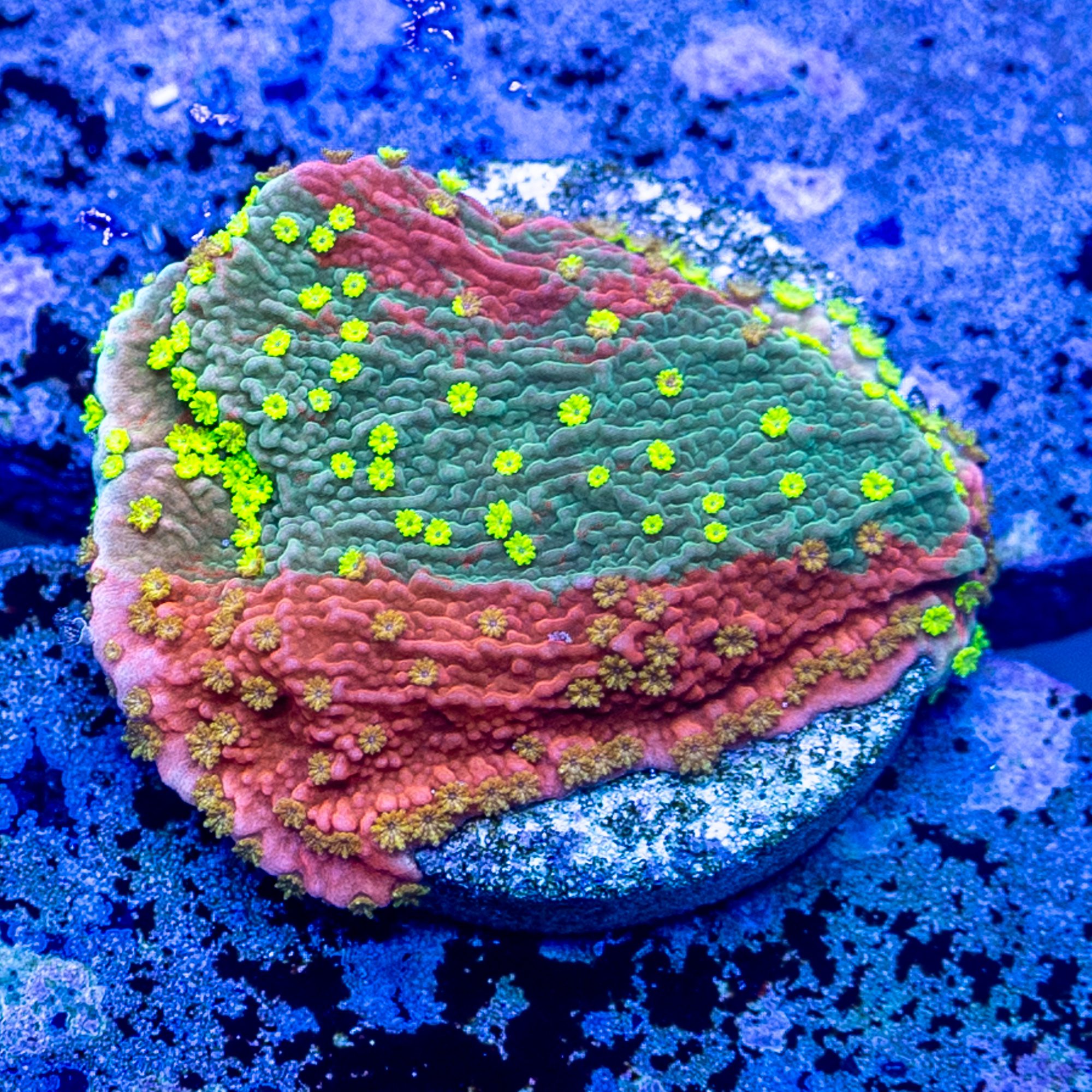Aquaculture Grade is a designation that we use to identify coral that has been in captivity for at least 1 year. This is designed to call out those lineages of coral that have a proven track record living & thriving in captivity.