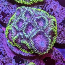 Encrusting Corals aren’t terribly difficult to keep, but beginners often find them to be very slow growing. They have a substantial skeletal structure so they require an ample and balanced availability of dKH and Calcium to grow. Most tend to fluoresce brighter colors in higher light. They can be pretty versatile when it comes to flow, but very few corals can be used to fill a “hot spot” from a strong power head and thrive as well as Favia or Favites!