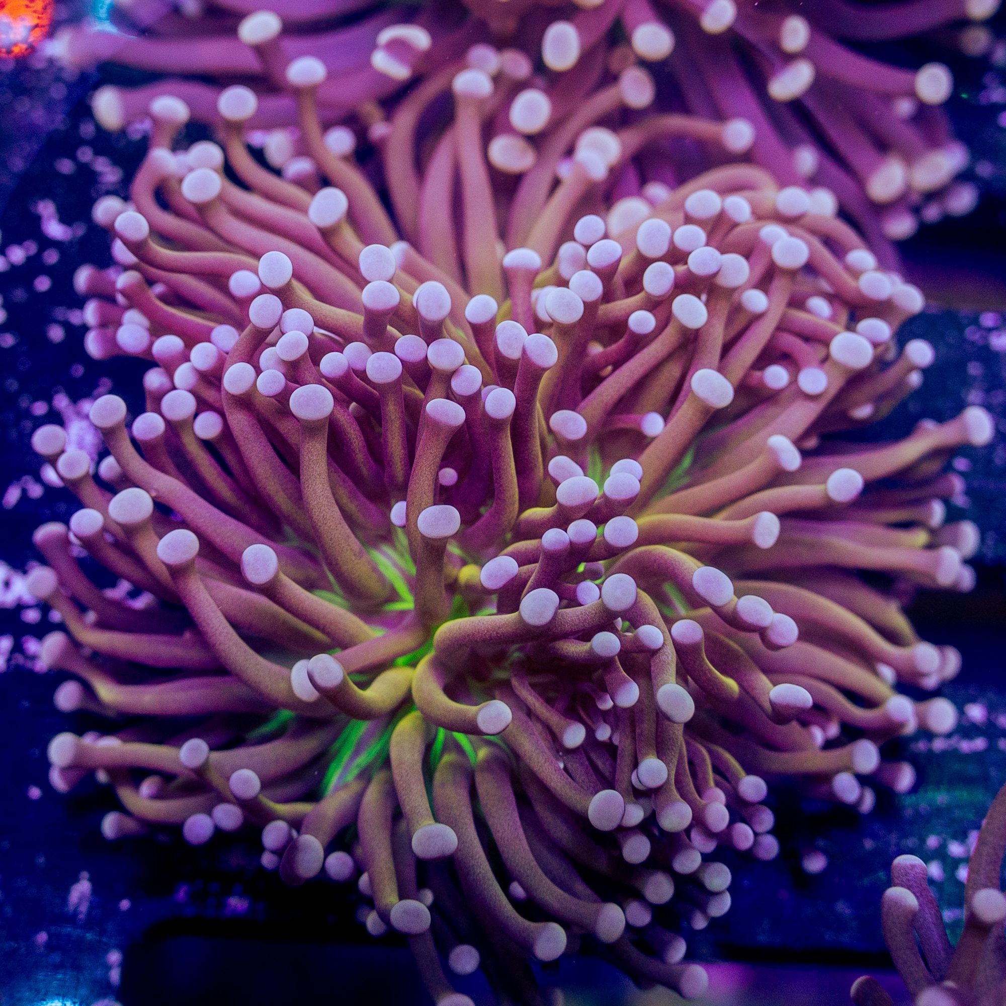 Torch Corals are made up of two distinct subspecies, the more common and generally longer tentacled Euphyllia Glaberens & Euphyllia Cristata. E. Glaberens generally work very well to make a “garden” with, but we have seen too many reefers learn the hard way not to mention; Australian Glabs often will not tolerate the close quartered company of Indo Glabs.