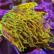 Torch Corals are made up of two distinct subspecies, the more common and generally longer tentacled Euphyllia Glaberens & Euphyllia Cristata. E. Glaberens generally work very well to make a “garden” with, but we have seen too many reefers learn the hard way not to mention; Australian Glabs often will not tolerate the close quartered company of Indo Glabs.