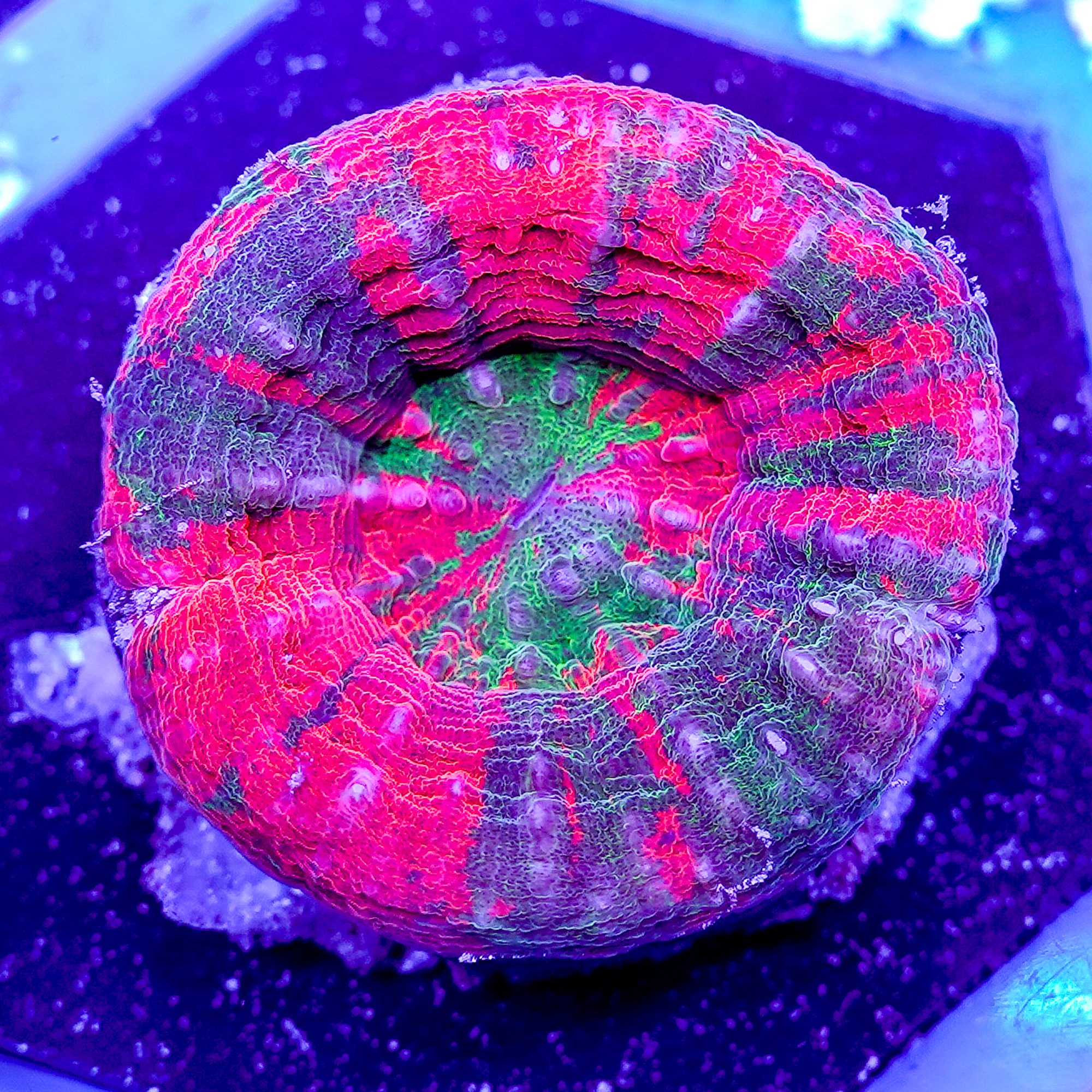 Scolymia or Donut coral come from the Great Barrier Reef. We have an excellent supplier of Wild & Cultured Scolymia in Australia. We love Aquascaping with Scolymia and can be placed flesh to flesh with a wide range of LPS including, in our experience, Acan (Micromussa) Lords, Australia Platygyras (not Indo!), Aussie Blasto Wilsoni, and even Symphyllia Wilsoni (with caution)