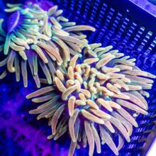 Wild Bubble Tip Anemones imported from Indonesia. Bright Purple base with fluorescent tips. While aquacultured BTAs are heartier, we find more advanced hobbyists prefer wild specimen, not just for their unique variety, but also because they usually get much larger and rarely split, versus the more domesticated/heavily propagated lineages that tend to split every time they double in size.