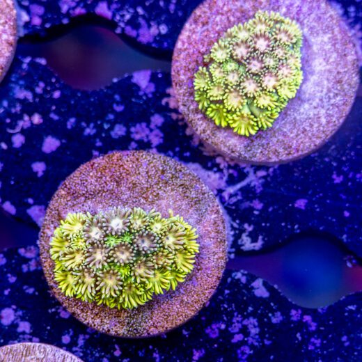 Gonipora is one our favorite here at DRC! Many reefers separate these into 2 categories: Long Tentacle and Short Tentacle, but there is a wide range species we import, and we’re constantly finding new varieties. We classify these as a moderate care level as they are particularly sensitive to phosphate levels above 0.10. They should also be given some room when placing, while many of them can be mounted flesh to flesh with each other, they can irritate alot of corals around them.
