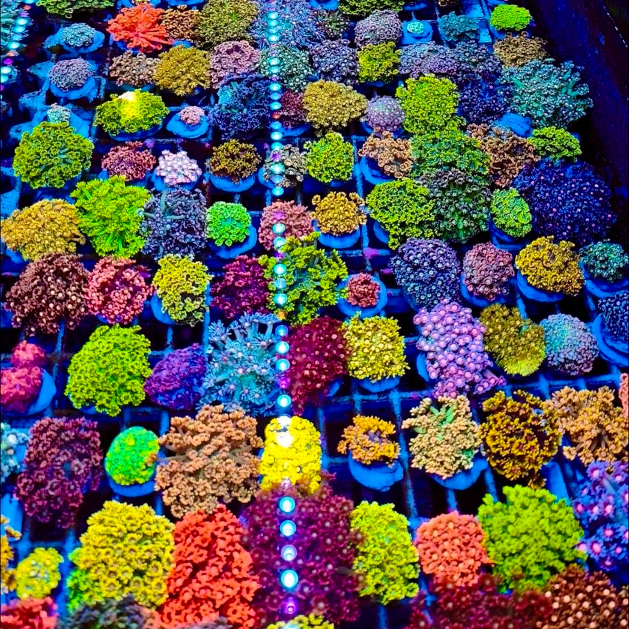 A collection of frags grown in our $39 Frag Tank at the Farm.