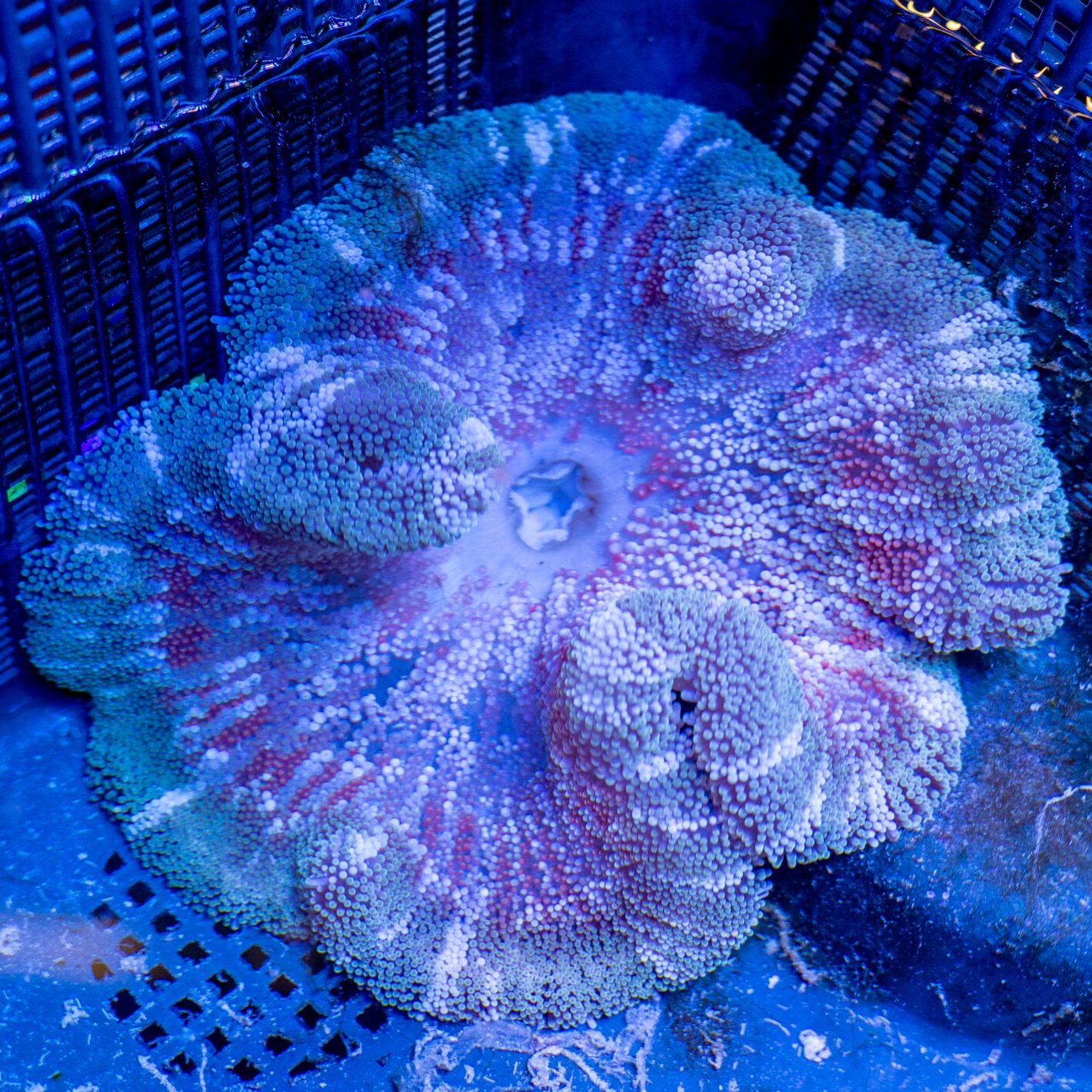 WYSIWYG crazy unique Haddoni Carpet Anemone, conditioned at our facility for over 3 months, and developing some absolutely beautiful color patterns featuring Blue, Green, White & Red tones!