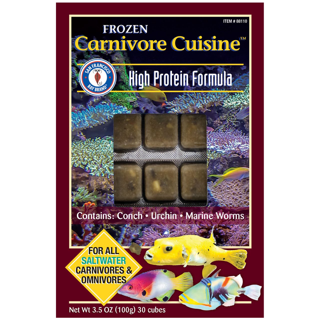 Carnivore Cuisine™ is a blend of natural seafood ingredients, marine worms, natural color enhancers and vitamins resulting in a nutritious diet for your marine carnivores. It has a familiar scent that stimulates your fish to feed aggressively. This formula provides essential nutrients that help maintain high energy levels and vigor in your fish.