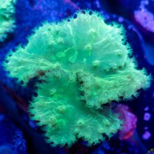 Leather Corals come in tons of different shape and colors. Most are very hearty and a good beginner coral as they will noticeable close up when water chemistry goes out of whack, alerting the aquarists and allowing time for corrections to be made before you’ll see any notable loss of tissues.