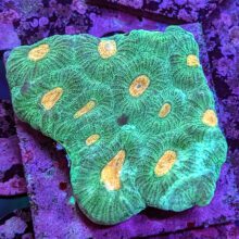 Encrusting Corals aren’t terribly difficult to keep, but beginners often find them to be very slow growing. They have a substantial skeletal structure so they require an ample and balanced availability of dKH and Calcium to grow. Most tend to fluoresce brighter colors in higher light. They can be pretty versatile when it comes to flow, but very few corals can be used to fill a “hot spot” from a strong power head and thrive as well as Favia or Favites!