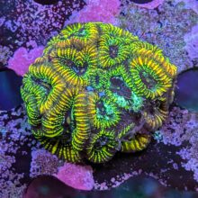 Encrusting Corals aren’t terribly difficult to keep, but beginners often find them to be very slow growing. They have a substantial skeletal structure so they require an ample and balanced availability of dKH and Calcium to grow. Most tend to fluoresce brighter colors in higher light. They can be pretty versatile when it comes to flow, but very few corals can be used to fill a “hot spot” from a strong power head and thrive as well as Favia or Favites!