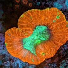 Trachyphyllia & Wellsophyllia are very similar in care. Maintaining stable alkalinity and pH are crucial to long term success. Trachyphyllia are one of the corals that we find most likely to develop new colors of zoaxelle bacteria flourishing in their flesh even months and months after acclimation to a new tank – it’s amazing to watch them progress, and we are currently working on a process tank for these corals in particular where we will move them from Quarantine to 60-90 days at a lower par, lower flow, in a high nutrient environment before we move them into our larger coral systems.