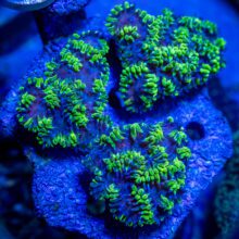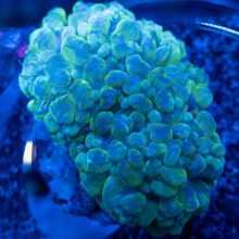 Bubble Corals are a classic in the Aquarium Trade, and there are a number of subspecies and different interesting growth patterns to enjoy. Bubble Corals are an LPS that expands and contracts a great deal from day to night, from photosynthesis to feeding mode, and when expelling waste. There will probably even be a few panic moments over the course of time when you suddenly see your prized, established Bubble looking like its lost chunks of tissue, and skeletal spurs are exposed to the water column. Don’t panic right away – this happens! As long as your tank has a well established biofilm, and nutrients are in check, in a few hours, your Bubble should be back to looking its best within a few hours.