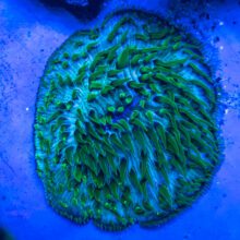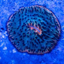 Plate Corals emcompass for more than just fungia, including Cyclopensis, Herpetolita, Heliofungia, Diaseris. We find the best color display to be in slightly lower lights, even partially shaded sometimes and they’re very easy to bleach. Ideally placement is similar to a mushroom coral, but with a bit more flow. They really enjoy the bottom of a bare bottom tank but many species can be easily irritated by stray sand particals on a sand bed. If your find you’re struggling with keeping them long term on your sand bed, and its not a matter of flesh wound from blowing sand, one thing to check is to make sure your sand bed is well siphoned and not trapping nutrients, we move ours bi weekly to siphon underneath them to prevent any build up from irritating them.