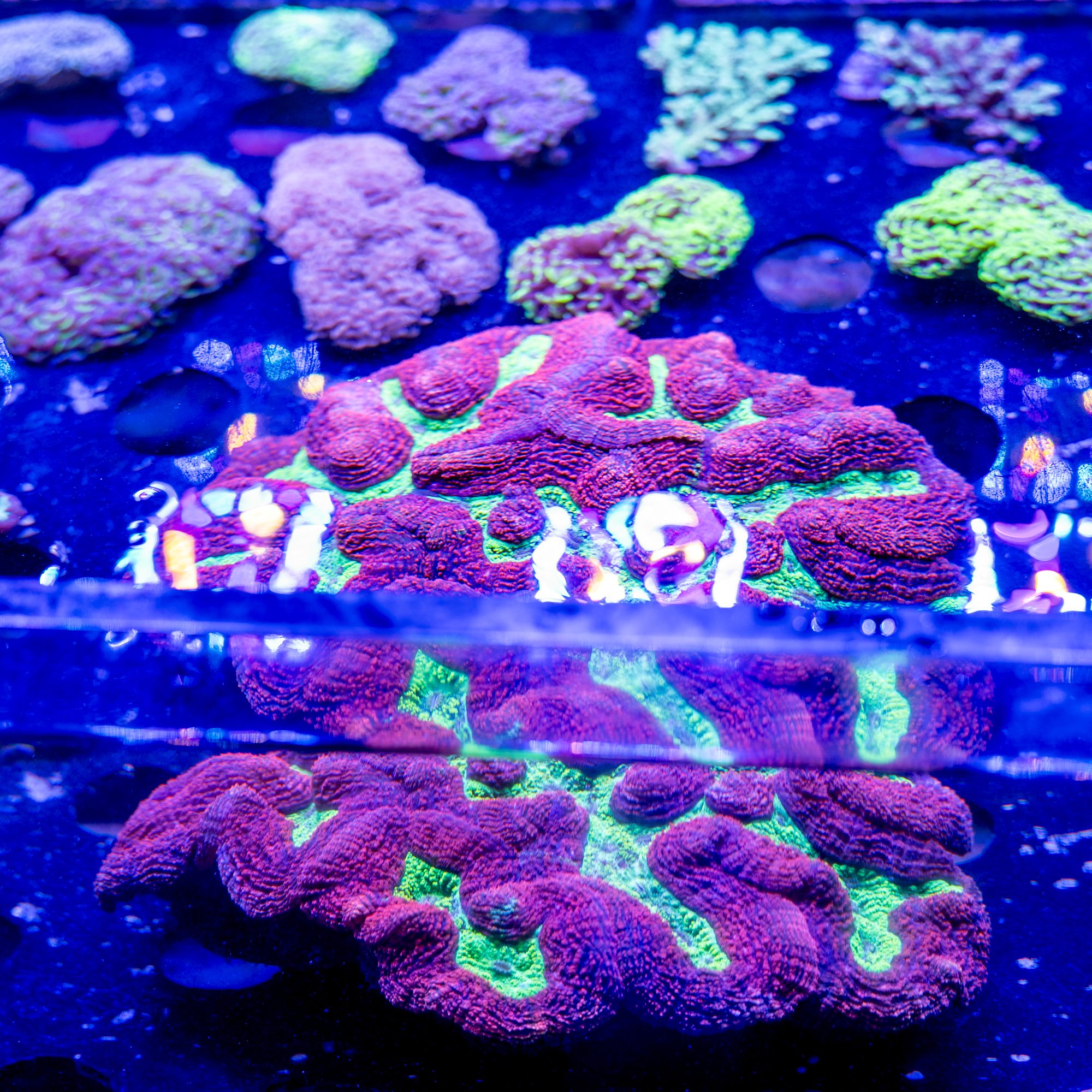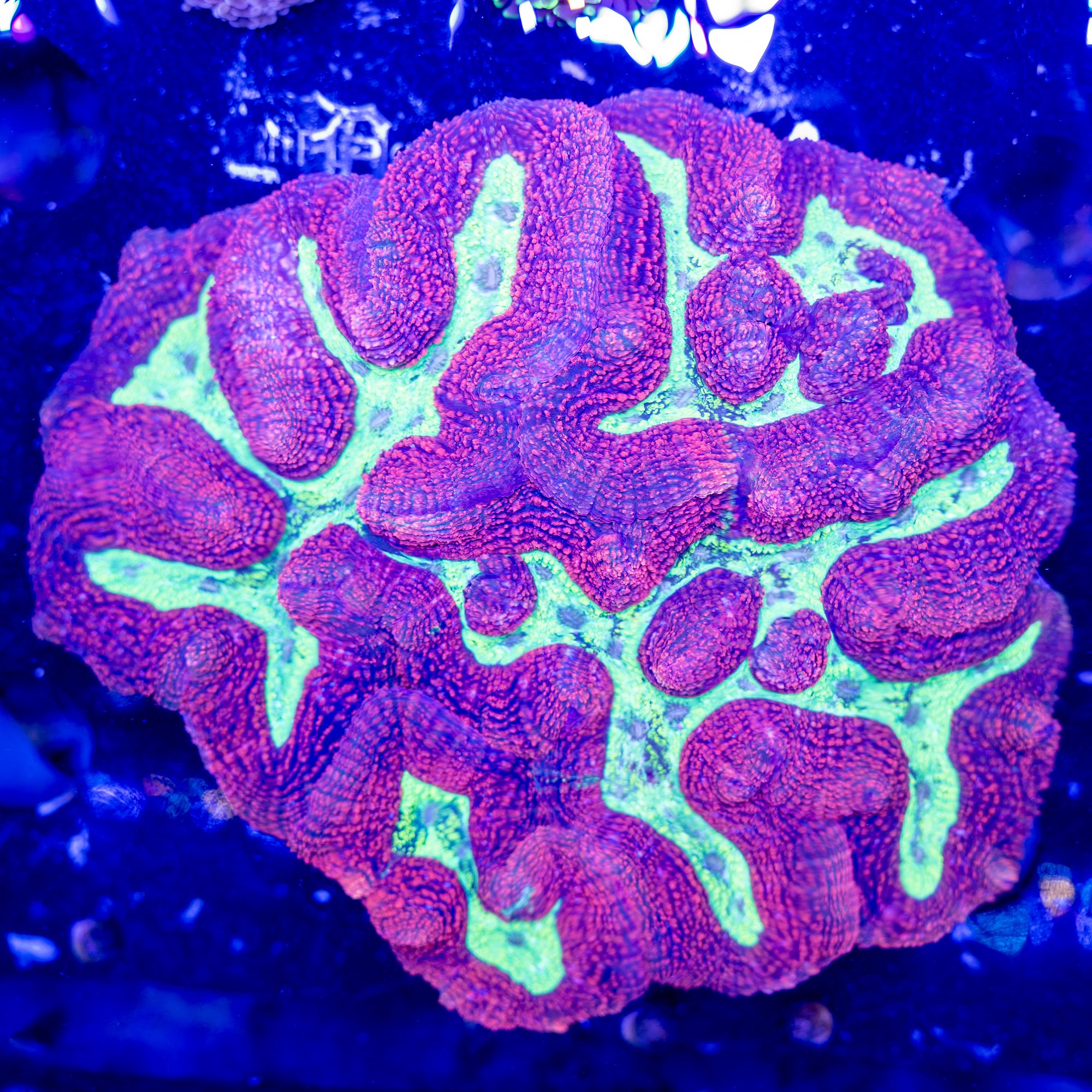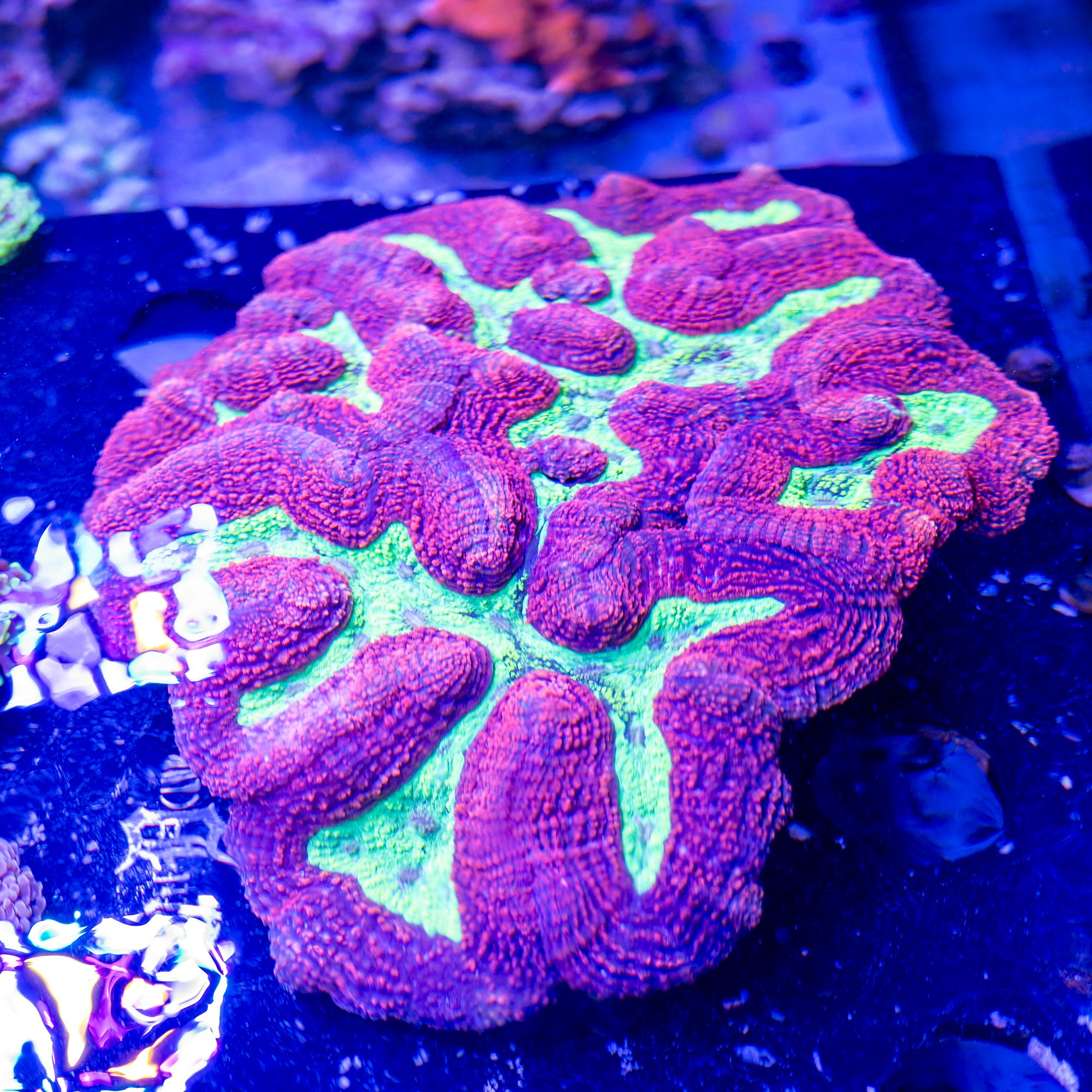 The Symphyllia from Indonesia we import is similar in alot of ways to Lobophyllia, but it grows wider, instead of branching outward. We also love Symphyllia Wilsoni, a unique subspecies from the Western Coast of Australia. Wilsoni has gotten a bad wrap due to importers seeking out some of the unique color patterns found on the Deep Water Symphyllia, and selling them without proper notation that they need colder water and lower light. All of our Wilsoni will be the Tropical varieties, not Deepwater unless specifically notated!