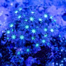 Clove Polyps or Clavularia sp. are a fairly easy to keep Soft coral. The trickiest part is placement, as you want enough indirect flow to keep the coral healthy, and prevent bacterial, fungal or algae from growing in between the polyps, but to high of flow and they’ll end up looking more like a Xenia blowing in the wind, in which case they often shrink up, and slowly loose polyps along the edges taking the brunt of the flow. We also find that they can do well from quite low, to Moderately high light with some time to adapt, but often maintain large Polyp Size when kept at a bit lower PAR.